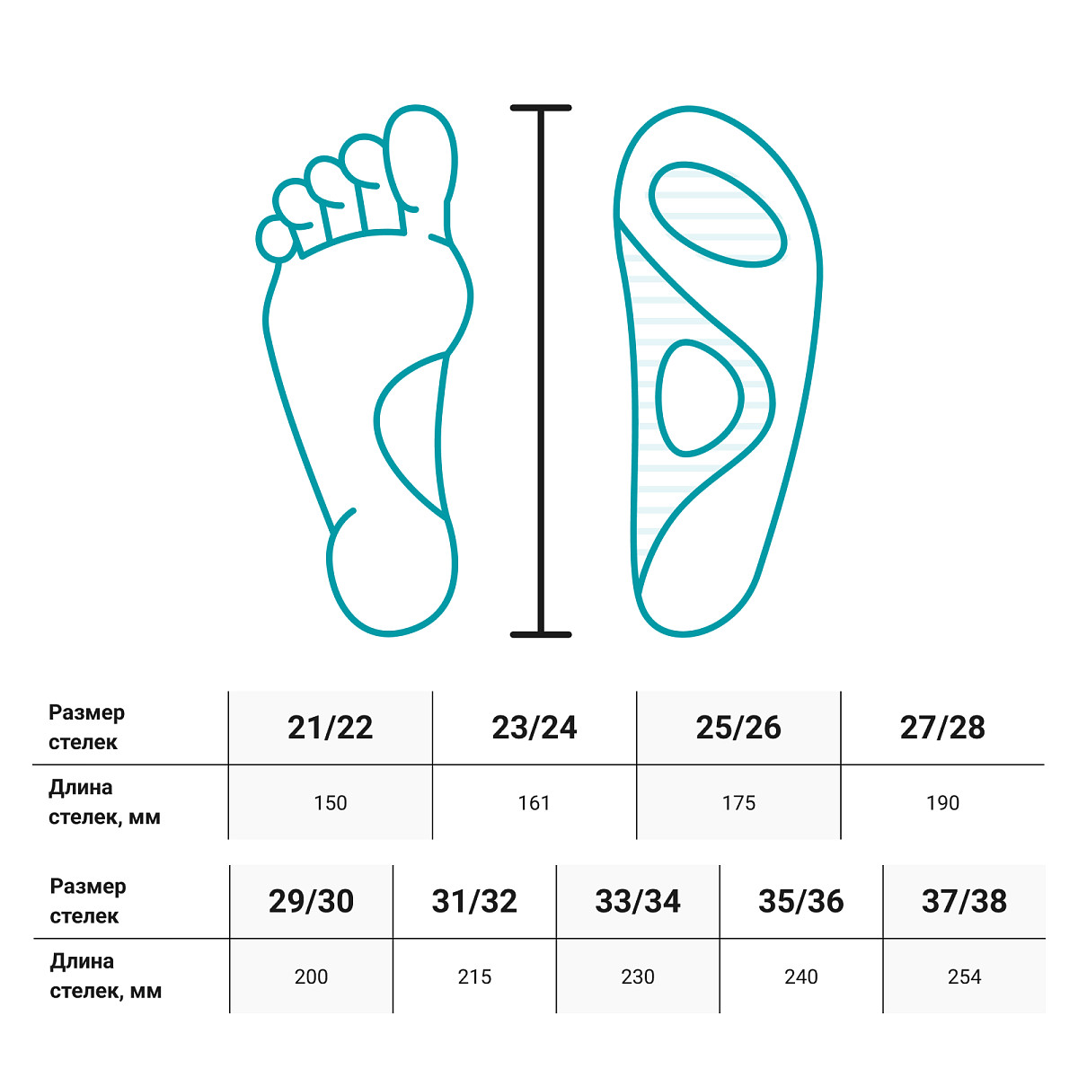 • Плоская опорная поверхность стельки обеспечивает надёжную опору и равновесие при ходьбе.